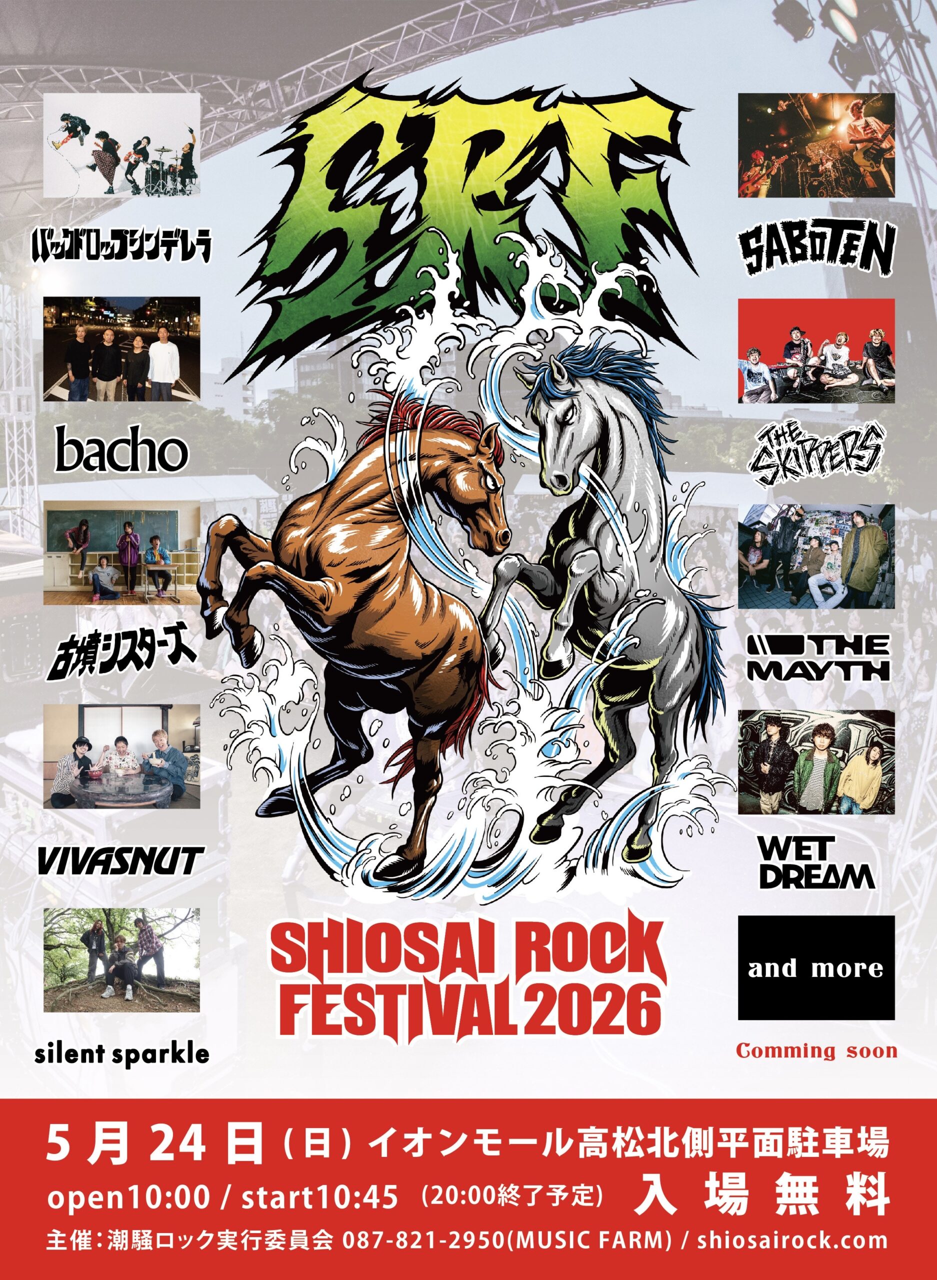 5/24(日)『SHIOSAI ROCK FESTIVAL 2026』イオンモール高松 北側平面駐車場入場無料 -出演-バックドロップシンデレラ古墳シスターズbachoSABOTENsilent sp…[続きを読む]