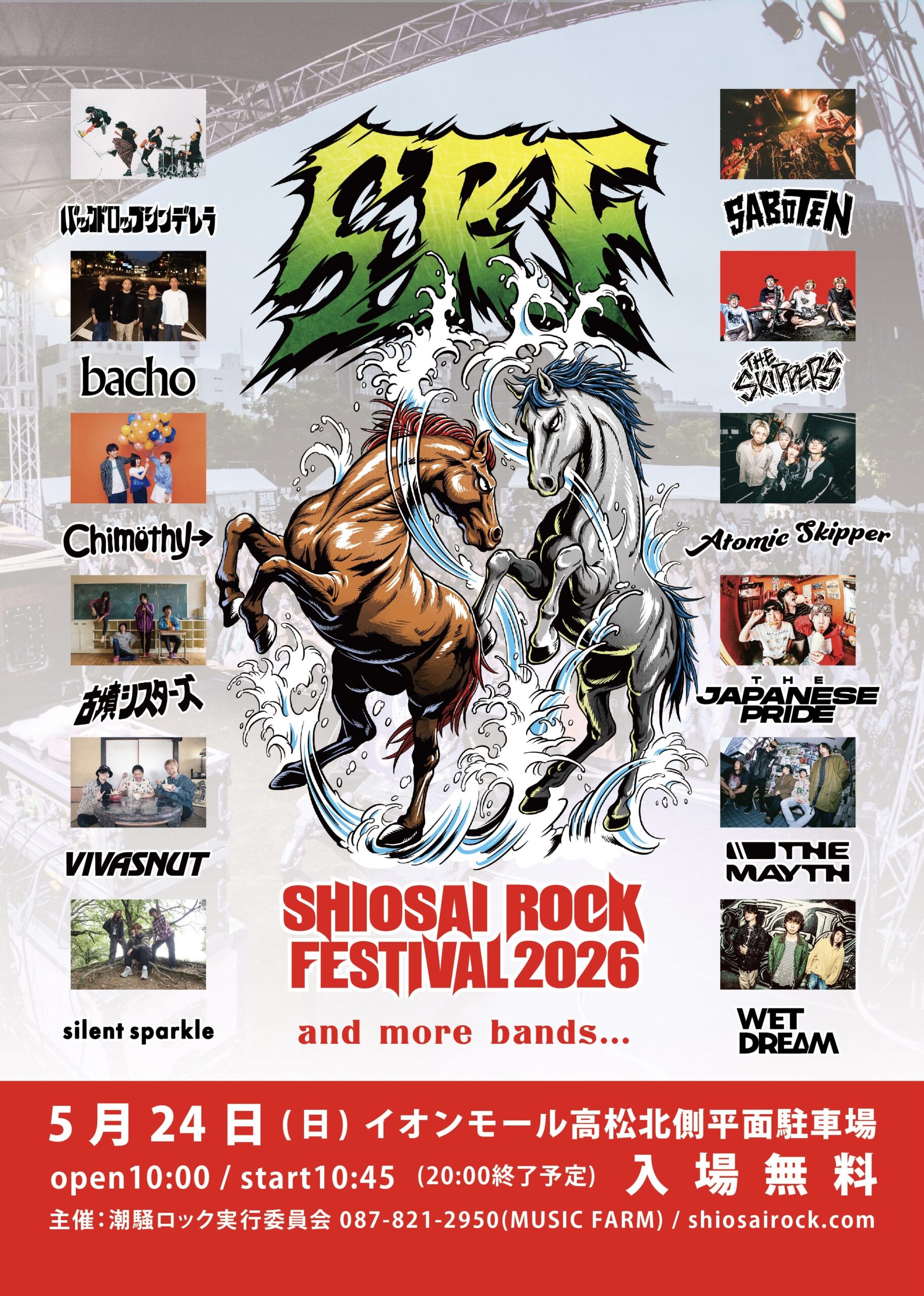 潮騒ロック、先行イベント開催します! 5/3(木・祝) 5/4(金・祝) 丸亀お城祭りにて 第1、3ステージの出演枠を頂きました! 潮騒メンツ以外のグループも多数出演! 入場もちろん無料! 時間帯は後…[続きを読む]